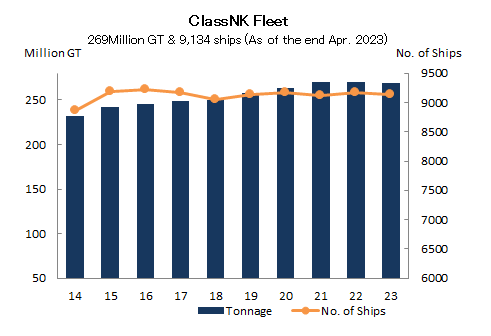 截至 2023 年 9 月底,該協會擁有 9134 艘船舶,總噸位超過 2.69 億噸。約占世界入級商船總量的20%。